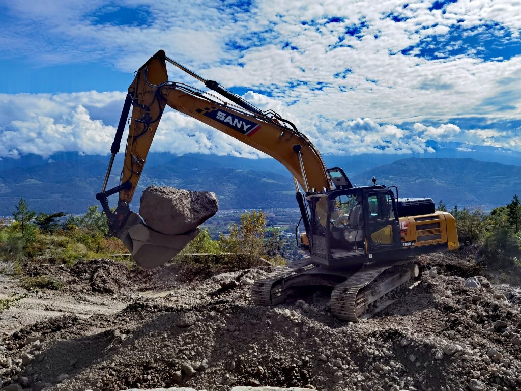 Pelle à chenilles ou pelle a pneus réseaux, terrassement ou démolition nous conviendront à vos chantiers. Expérience avec rototilte, pince de tri, croque béton,BRH. Nous pouvons aussi convenire pour vos chantier de concassage et criblage